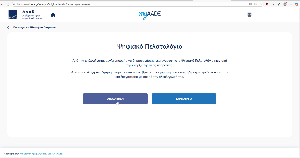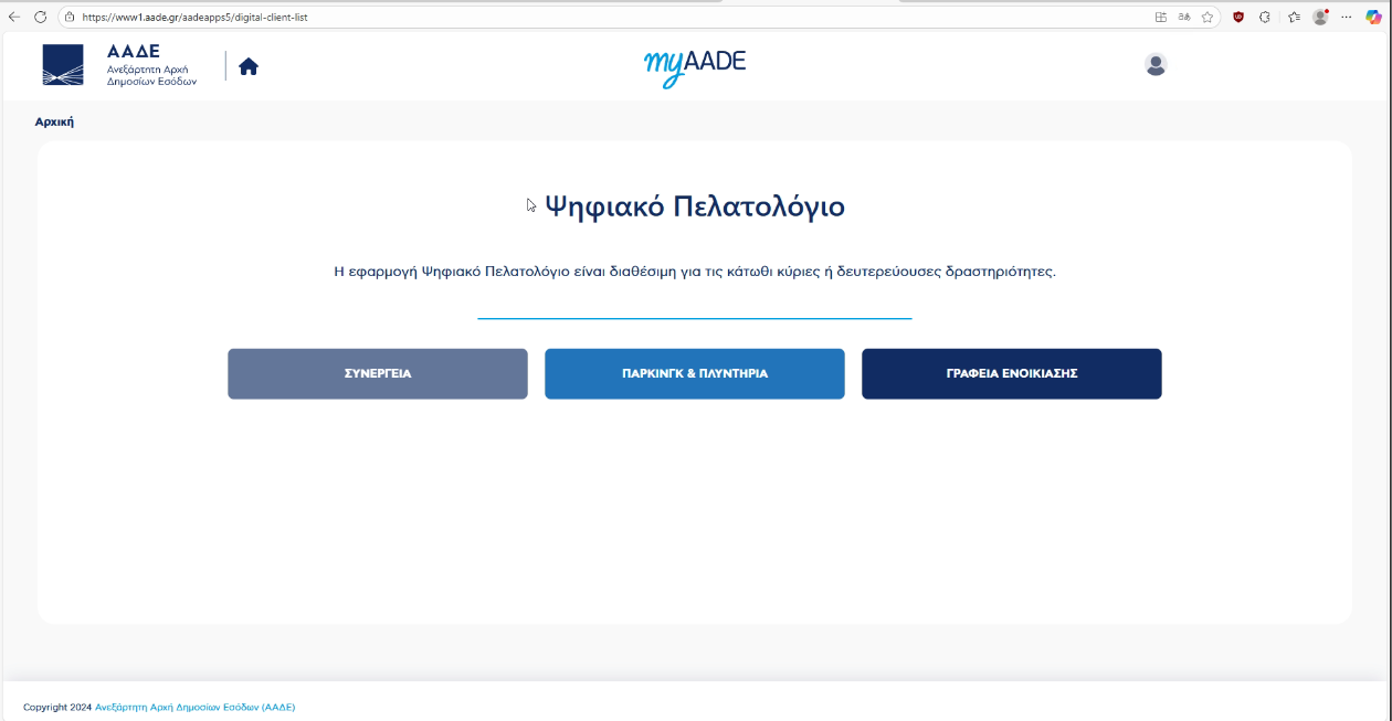 Η είσοδος γίνεται από τη σελίδα https://www.aade.gr/psifiako-pelatologio